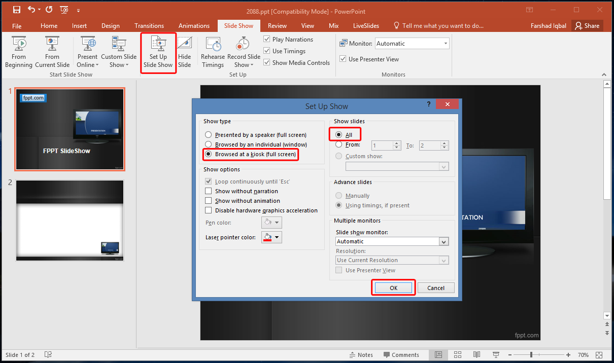 kiosk mode in powerpoint - FPPT