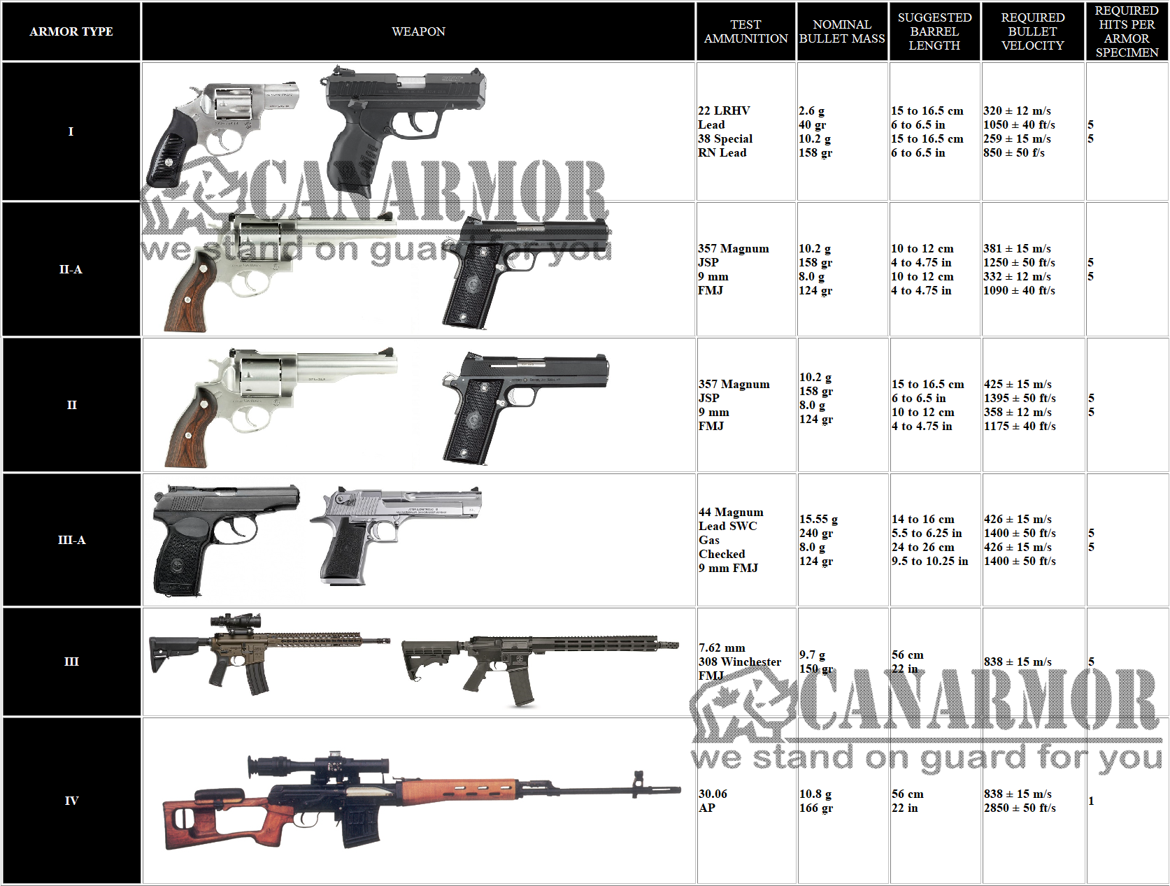 NIJ STANDARDS - BALLISTIC RESISTANT PROTECTIVE CHART